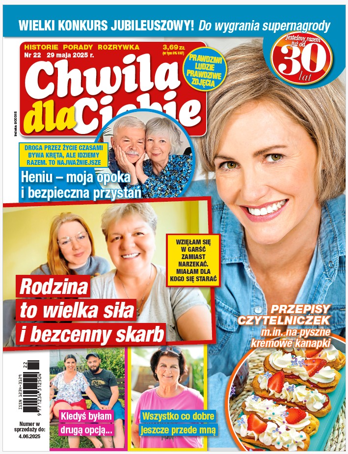 To już 30 lat odkąd tygodnik „Chwila dla Ciebie” jest na polskim rynku! To trzy dekady pełne wyjątkowych historii, emocji i niezwykłych spotkań z Czytelniczkami, które uczyniły tę gazetę czymś więcej niż zwykłym czasopismem. Każda strona powstała z myślą o kobietach i dzięki kobietom z całej Polski, które dzieliły się swoimi przeżyciami, troskami i radościami.