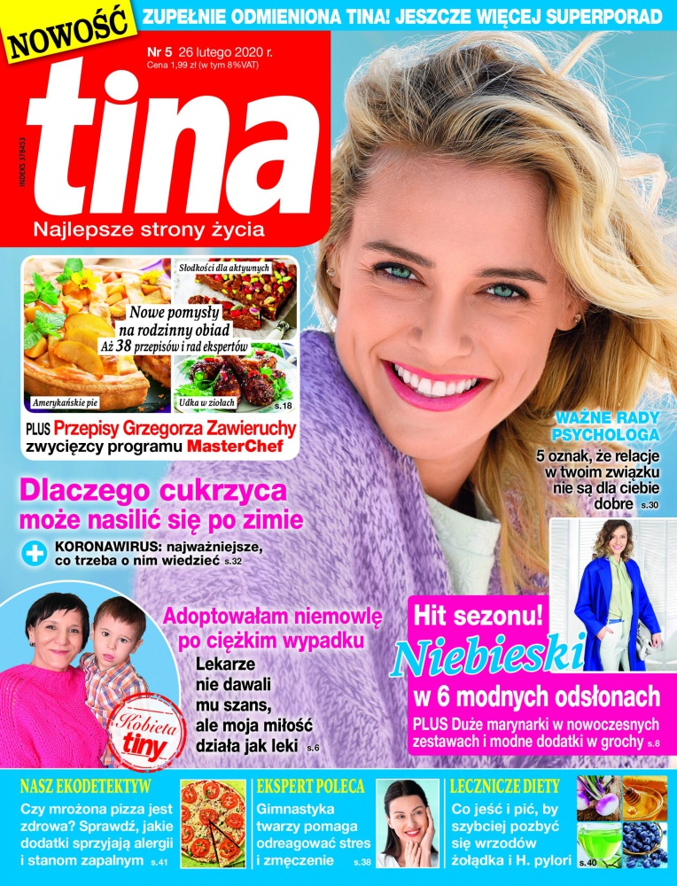 Począwszy od wydania 5/2020 „Tina” będzie miała, nowe rubryki z poradami, powiększone działy: moda i kuchnia oraz zmienioną szatę graficzną.