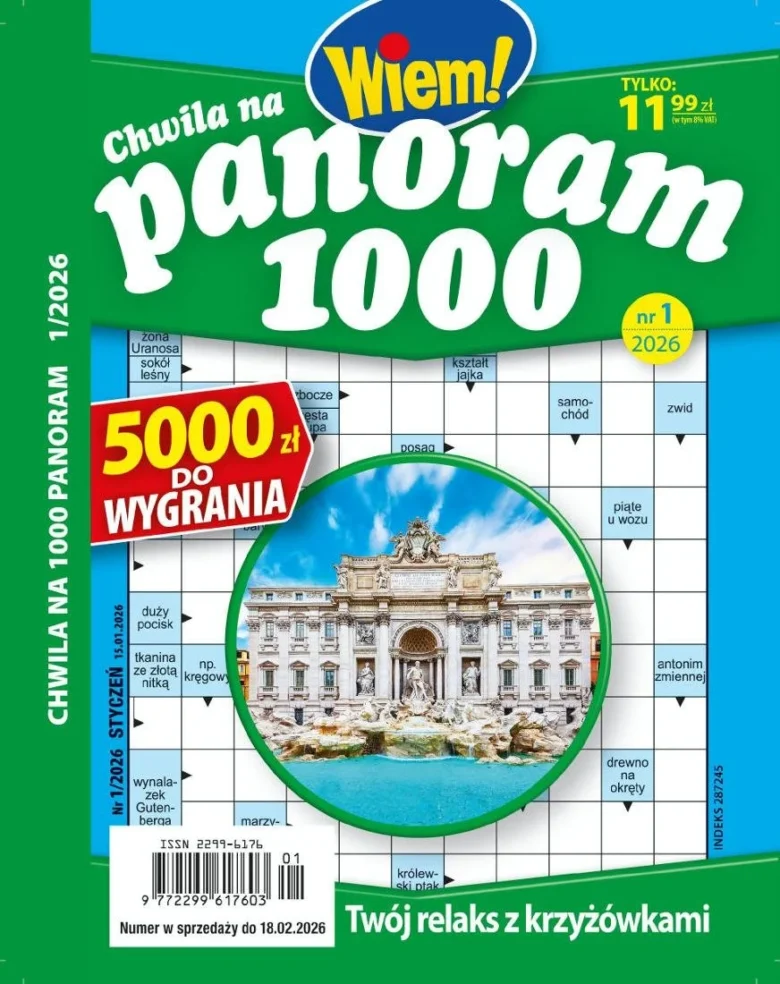 Chwila na 1000 panoram to tytuł z bestsellerowej serii i prawdziwa uczta dla wszystkich pasjonatów najpopularniejszych krzyżówek w Polsce. W każdym zeszycie czytelnicy znajdą aż 1000 świetnych panoram, a obok każdej z nich spis trudniejszych słów. Co miesiąc do wygrania 5000 złotych. Relaks i dobra zabawa w jednym wydaniu.