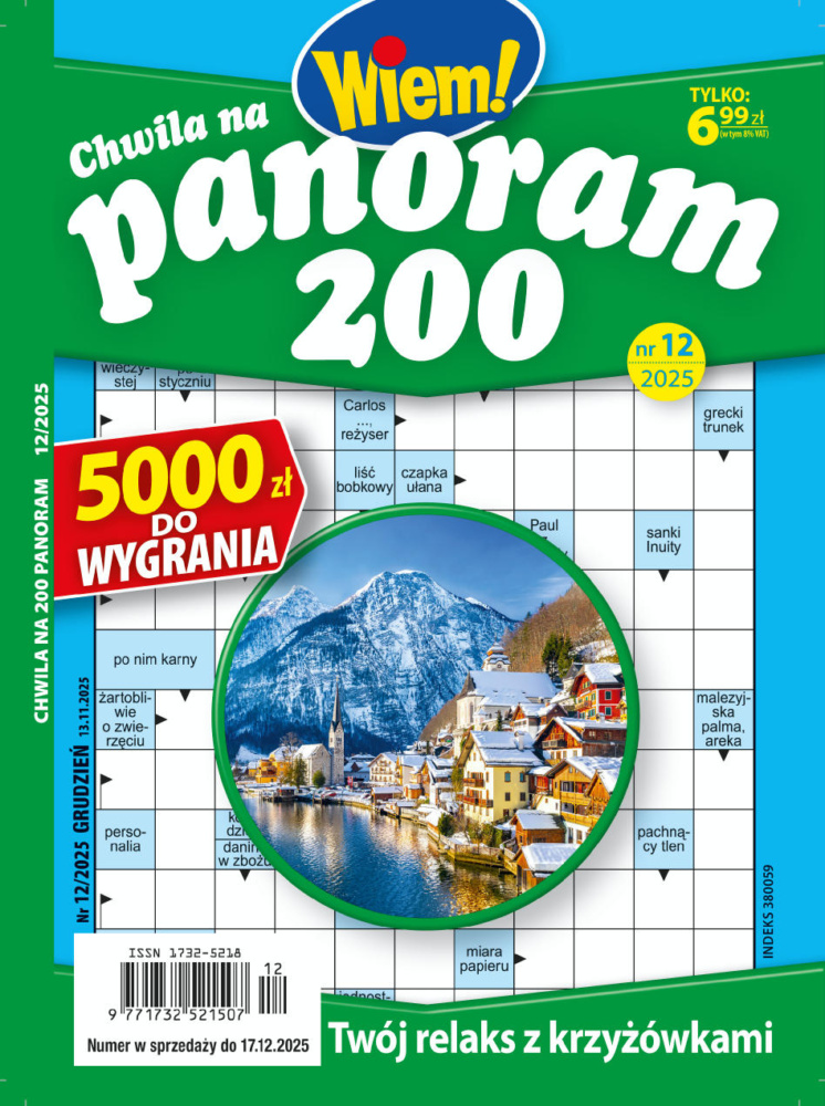 Chwila na 200 panoram to tytuł z bestsellerowej serii i prawdziwa uczta dla wszystkich pasjonatów najpopularniejszych krzyżówek w Polsce. W każdym zeszycie, na 132 stronach, czytelnicy znajdą 200 świetnych panoram, a obok każdej z nich spis trudniejszych słów. Co miesiąc do wygrania jest 5000 złotych. Dobra zabawa i trening umysłu dla każdego.