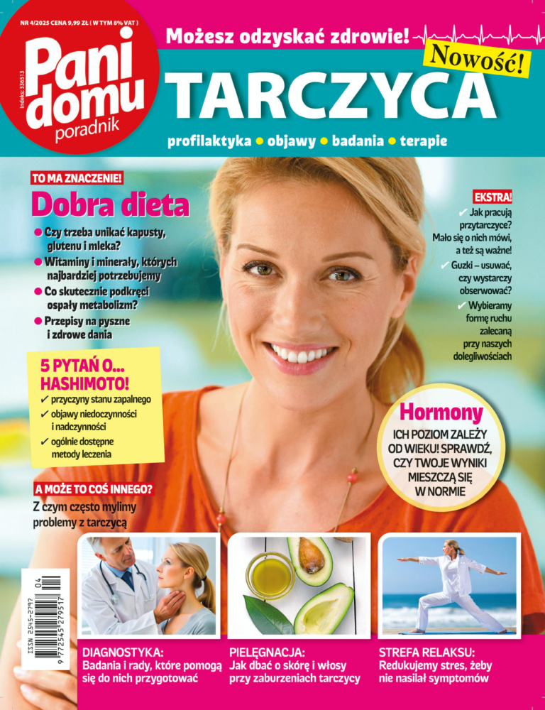 W magazynie czytelnicy znajdą kompendium wiedzy na temat choroby Hashimoto wraz z dietą, która łagodzi jej objawy, poradnik z najważniejszymi badaniami oceniającymi pracę gruczołu tarczowego, sposoby postępowania przy niedoczynności, nadczynności i stanie zapalnym, a także dietę przywracającą równowagę hormonalną.
