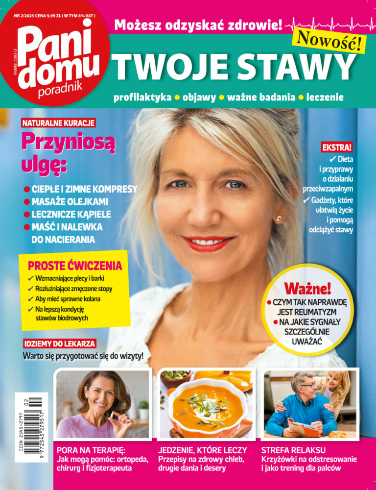 23 kwietnia ukazało się nowe wydanie Pani domu poradnik nr 2/2025 „Twoje Stawy”. W magazynie czytelnicy znajdą niezbędne informacje na temat pierwszych objawów choroby stawów, ważne badania profilaktyczne, plan 30 prostych ćwiczeń, które pozwolą ukoić ból oraz domowe zabiegi pomagające zadbać o stawy jak i sposoby wspierające terapię.