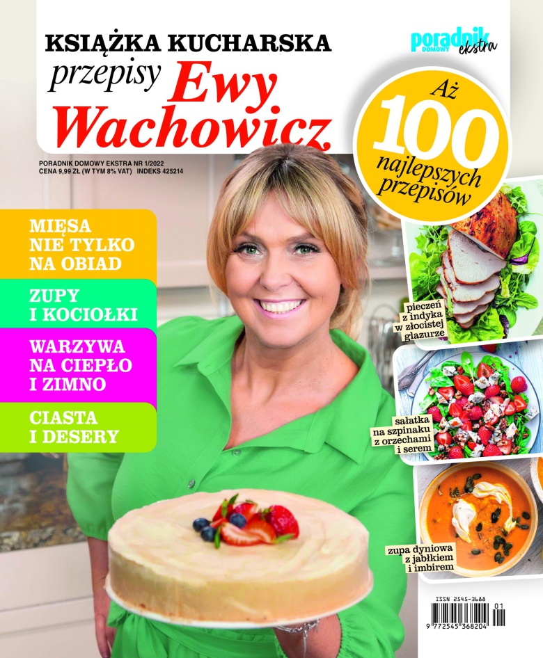 W sprzedaży jest nowe wydanie Poradnika domowego „Przepisy Ewy Wachowicz”. W magazynie czytelnicy znajdą, aż 100 wybranych przepisów kulinarnych Ewy Wachowicz, a wśród nich: mięsa nie tylko na obiad, zupy i dania jednogarnkowe, warzywa na ciepło i zimno oraz słodkie dania, ciasta i desery, którym nie sposób się oprzeć.