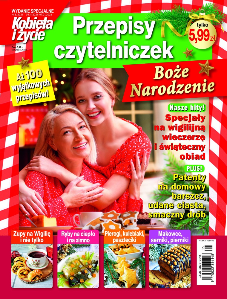 5 listopada ukaże się specjalne wydanie miesięcznika „Kobieta i Życie” – „Przepisy czytelniczek. Boże Narodzenie”. Magazyn zawiera 100 wyjątkowych przepisów na tradycyjne potrawy wigilijne i świąteczne, które zostały wyselekcjonowane spośród sprawdzonych receptur nadesłanych do redakcji przez czytelniczki „Kobiety i Życia”.
