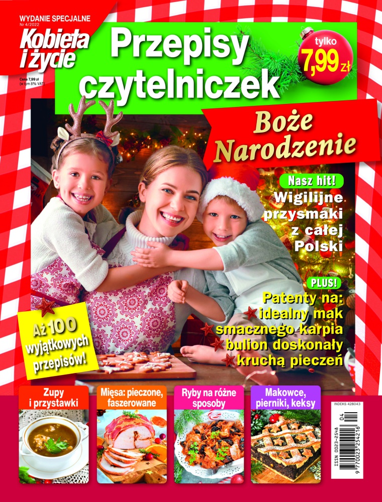 9 listopada ukaże się specjalne wydanie miesięcznika „Kobieta i Życie” – „Przepisy czytelniczek Boże Narodzenie”. Magazyn zawiera 100 przepisów na tradycyjne potrawy wigilijne i świąteczne, które zostały wyselekcjonowane spośród sprawdzonych receptur nadesłanych do redakcji przez czytelniczki „Kobiety i Życia”.