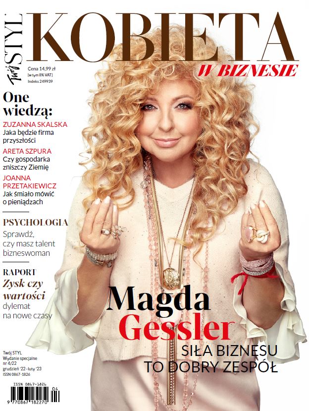Dodatkowo w numerze autorka książek Areta Szpura podpowiada jak uratować świat. Sama stworzyła odzieżową markę i porzuciła ją, bo nie chciała szkodzić planecie. Działa na rzecz ekologii i zrównoważonego biznesu i twierdzi, że możemy tworzyć firmy przyjazne naturze, a także reportaż, którego bohaterki podają przepis na sukces w obliczu pandemii, wojny, inflacji – co pomaga przetrwać poważne kryzysy? W firmie tą siłą jest lojalny kreatywny zespół. Jak go zbudować, jak pielęgnować relacje? Dziś procentuje polityka inwestowania w dobre relacje.