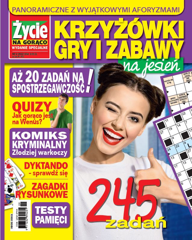 1 września ukaże się Wydanie Specjalne Życie na Gorąco – Krzyżówki, Gry i Zabawy na jesień. W magazynie czytelnicy znajdą 245 interesujących zabaw krzyżówkowych i łamigłówek w dużym formacie, zadania na spostrzegawczość, tym razem uzupełnione przykładami złudzeń optycznych. Rozwiązaniami krzyżówek są ciekawe aforyzmy.